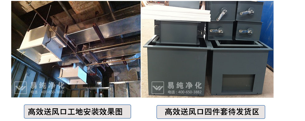 高效送風(fēng)口為千級(jí)、萬級(jí)、十萬級(jí)凈化空調(diào)系統(tǒng)較為理想的終端過濾裝置,可廣泛于醫(yī)藥、衛(wèi)生、電子、化工等行業(yè)的凈化空調(diào)系統(tǒng)。高效送風(fēng)口是用作改造和新建1000-300000級(jí)各級(jí)潔凈室的終端過濾裝置,是滿足凈化要求的關(guān)鍵設(shè)備。高效送風(fēng)口包含靜壓箱,散流板,高效過濾器,與風(fēng)管的接口可為頂接或側(cè)接