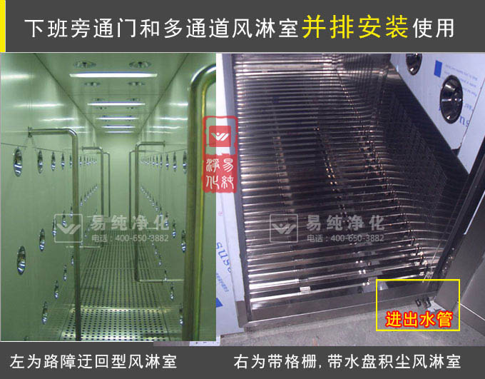 4、風(fēng)淋室為單向通道進(jìn),旁邊設(shè)置下班通道門(mén);