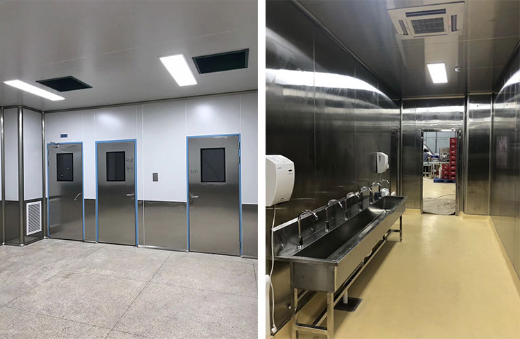 正是安徽綠帝食品有限公司這樣的企業(yè)情懷,遇到了同樣也是以企業(yè)社會(huì)責(zé)任感為公司企業(yè)文化的無錫易純凈化設(shè)備有限公司。兩家的深入交流、溝通后,建立了深深的好感和信任!由于安徽綠帝食品有限公司主要生產(chǎn)加工肉制品,無錫易純凈化設(shè)備有限公司為安徽綠帝食品有限公司打造的十萬等級(jí)凈化車間主體結(jié)構(gòu)為不銹鋼材質(zhì),因?yàn)槿庵破飞a(chǎn)企業(yè)車間內(nèi)濕度過大,空氣中有鹽分,容易腐蝕普通的彩鋼板,并且使用壽命有限,更容易滋生細(xì)菌,不好維護(hù)保養(yǎng),所以易純凈化采用了304不銹鋼潔凈板材做吊頂和隔斷,更易維護(hù),使用壽命更久,更符合安徽綠帝食品有限公司的生產(chǎn)工藝。