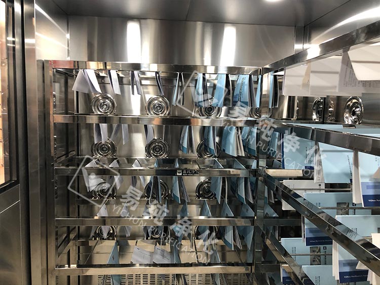 1) 檔案除塵消毒室內(nèi)外均為304不銹鋼,表面為拉絲或鏡面處理,不銹鋼厚度1.2mm;