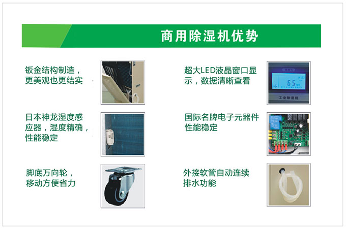 商用除濕機在家庭得應用可以有效的控制濕度,防止物品受潮,風干衣物,防止各種因潮濕而引起的各種疾病的流行,除濕機,讓您擁有陽光般的感覺!